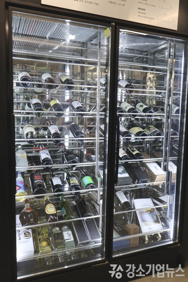 국제티엔씨가 판매하는 프리미엄 와인셀러. 국내 특허를 받은 제품으로 신세계 L&B에 설치됐다. 진열부의 각 선반에 냉기가 균일하게 전달돼 와인의 풍미를 최적 상태로 보존한다. [사진=강소기업뉴스]