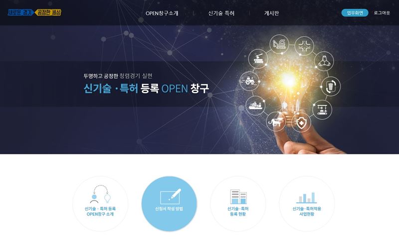 앞으로 도 발주사업 참여를 원하는 신기술·특허 보유 기업은 ‘신기술·특허 등록 오픈 창구’ 홈페이지에서 회원가입 후 한번만 기술 등록을 하면 된다.